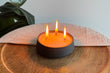 - Vul het bakje met kaarsenzand, plaats een lontje en steek het aan.